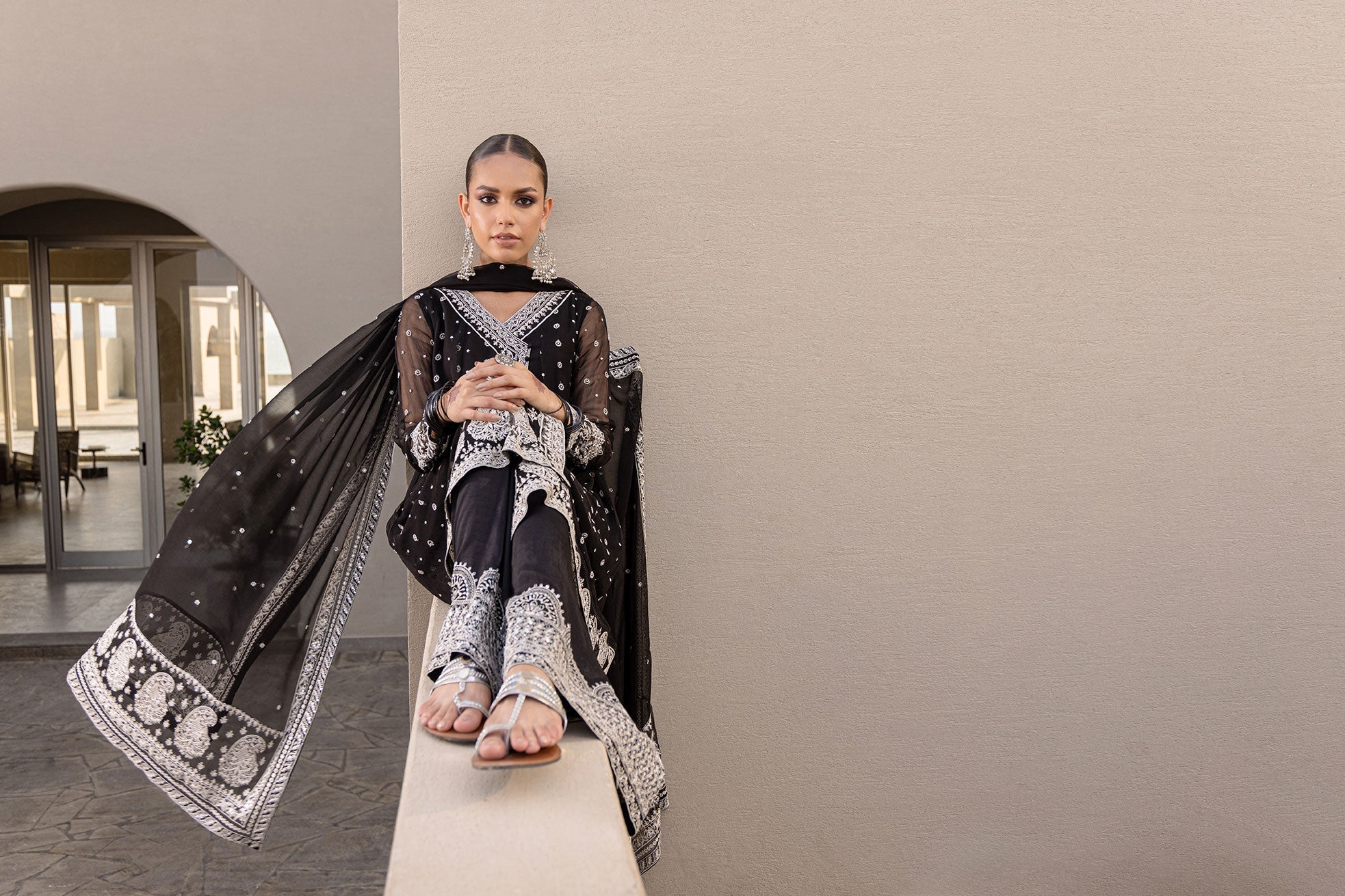 FW24DA-2652 BLACK 2PCS EMBROIDERED KURTA WITH TROUSER