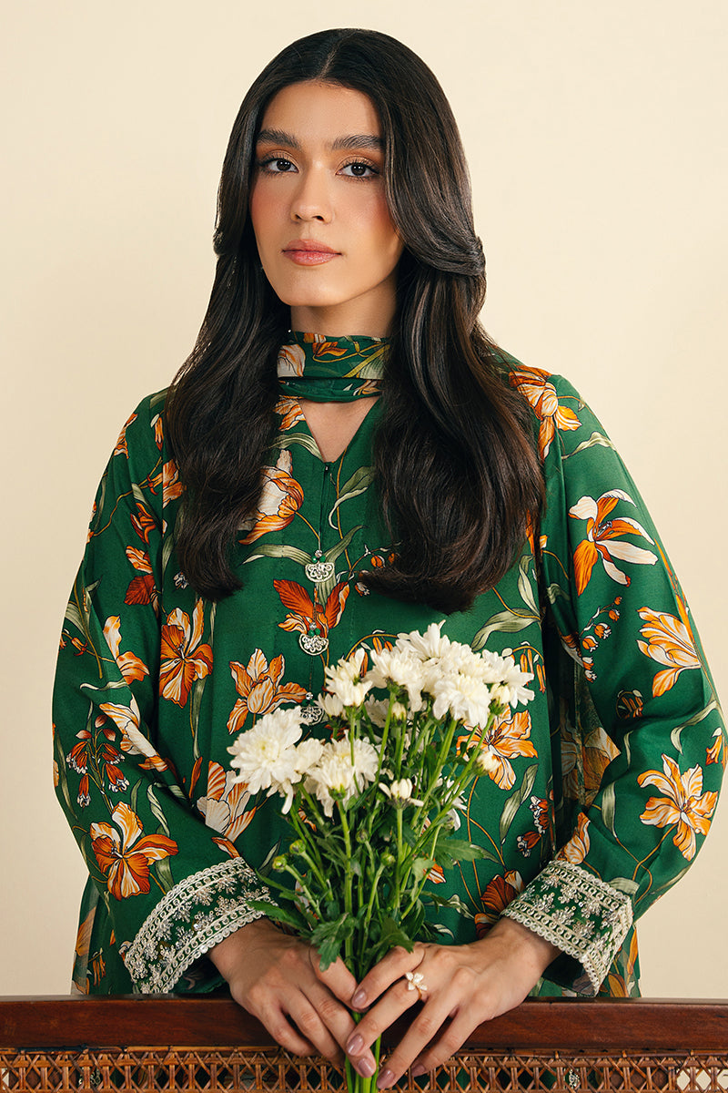 GREEN SPARKLE-2 PC (SHIRT & DUPATTA)