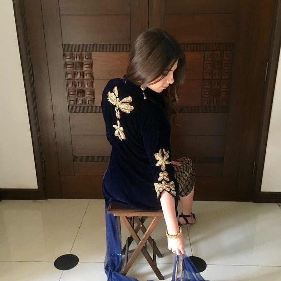 Description: Velvet Top Hand Embellished with Sequins and Stones. Paired with Jamawar Pants.