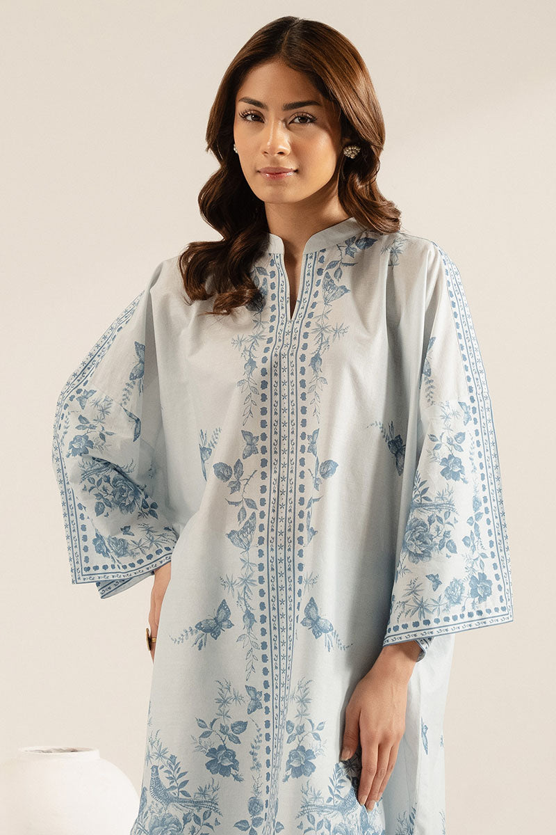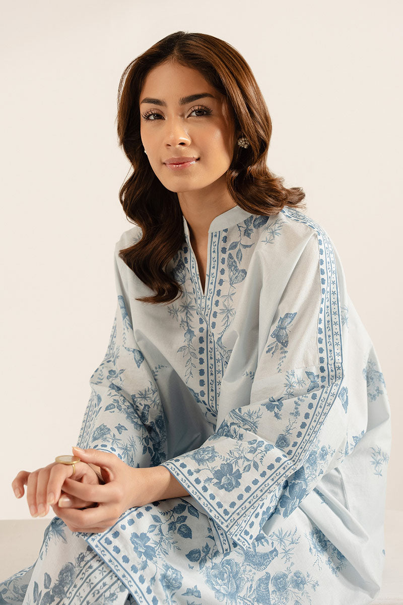 Get ready for summer with our ICE WHISPER-2PC set, featuring a comfortable and stylish boxy fit shirt in printed lawn fabric. The neckline band with slit opening adds a touch of flair, while the 3-quarter raglan sleeves provide a relaxed look. The matching printed lawn box pants complete the set for a chic and effortless look.