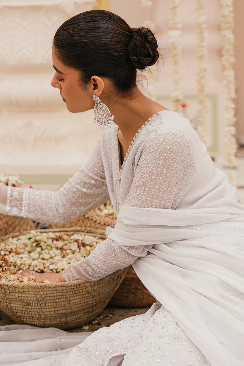 - Expertly crafted with chiffon fabric, the LUNAR ROCK-2 PIECE features an A-line shirt with embroidered panels for a stylish look. The V-neckline is adorned with intricate embellishments and tassel detailing for added elegance. The sleeves are also embroidered and the set comes with a matching chiffon dupatta, making it a must-have for any fashion-forward wardrobe.