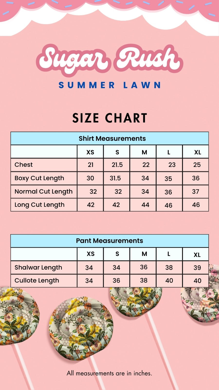 From vibrant fruity prints to soft pastel tones, Sugar Rush offers a wide range of designs to suit every mood. With versatile silhouettes‚Äîfrom boxy cuts to square damans, and skinny shalwars to wide-cut culottes‚Äîthere‚Äôs a style for every girl.üéÄü´ßüßö‚ôÄÔ∏è