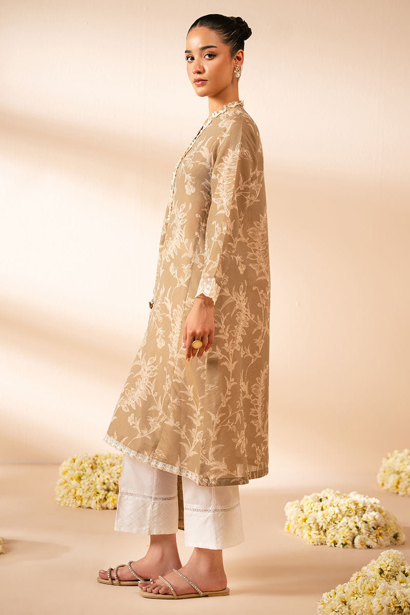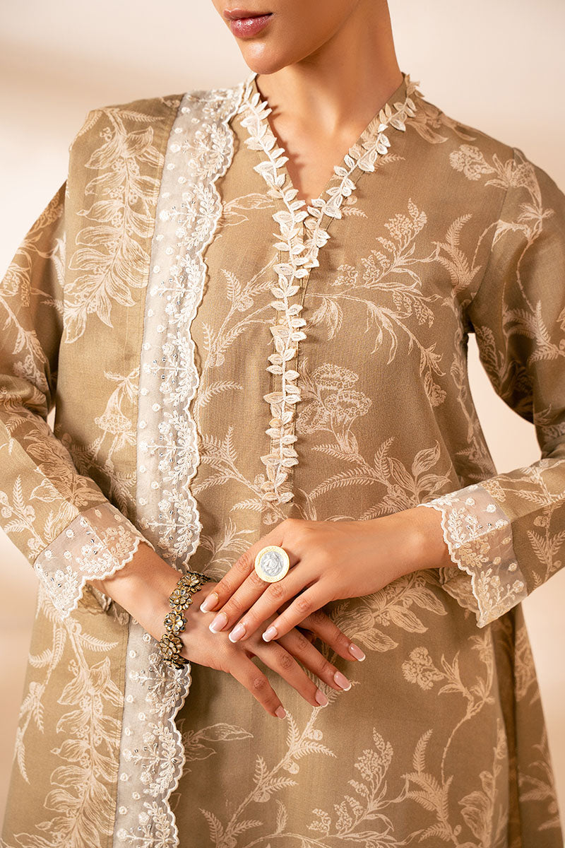 Elevate your wardrobe with SMOKE GREEN-2PC, featuring an A-line panelled fancy yarn shirt with front and back print, and a beautifully embroidered neckline wrap. The flared sleeves add a touch of elegance with embroidered borders. Complete the look with the fancy yarn printed and embroidered borders dupatta.