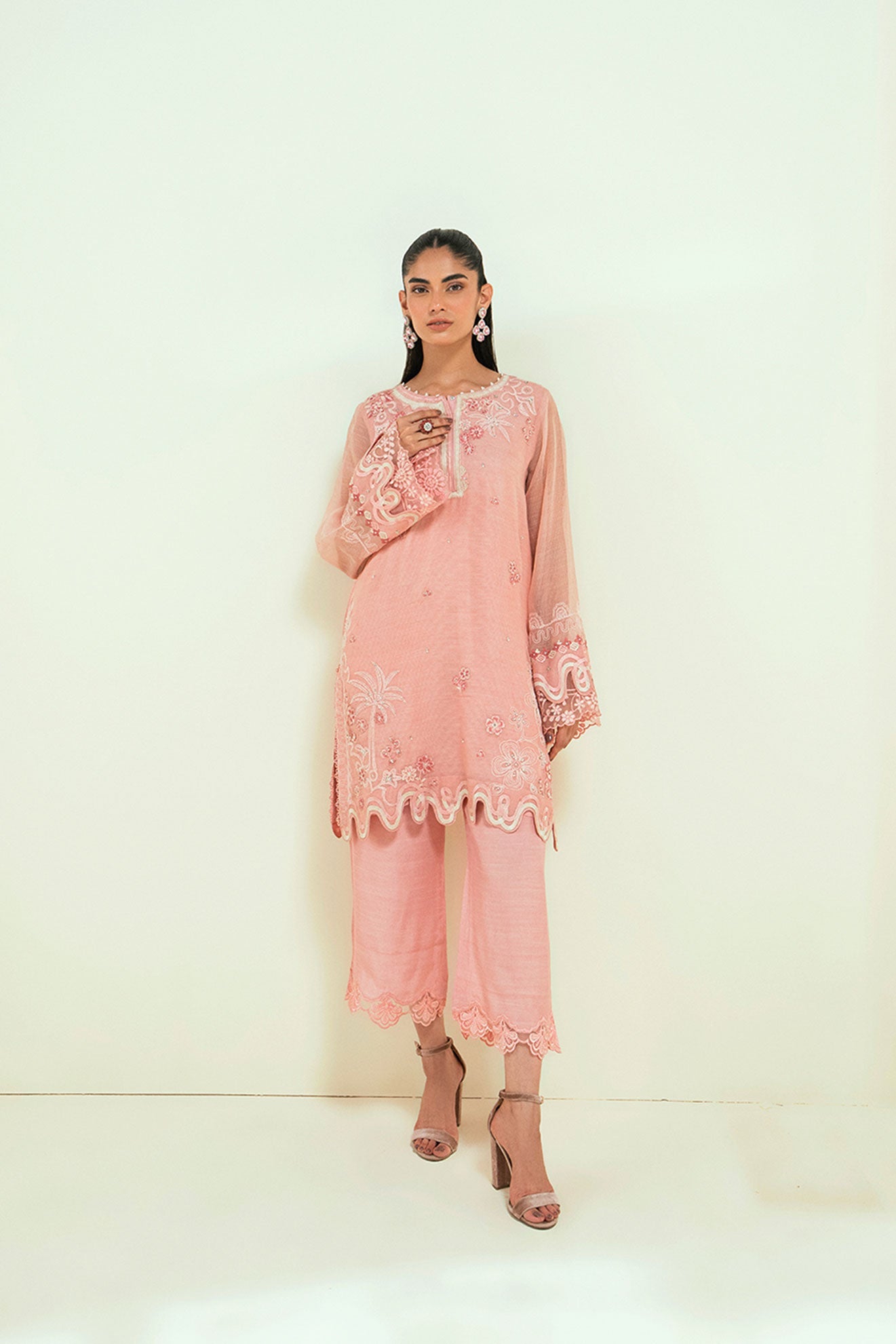 SS25DA-2737 PINK 2PCS EMBROIDERED KURTA WITH TROUSER