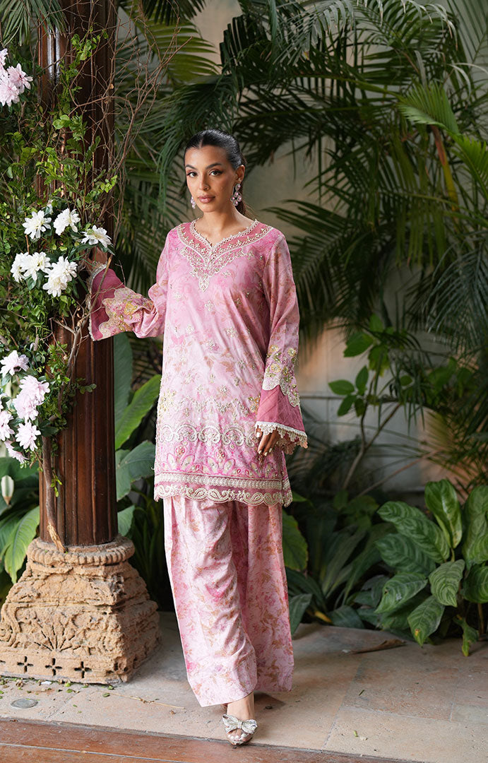 SS25DA-2756 PINK 2PCS EMBROIDERED KURTA WITH TROUSER