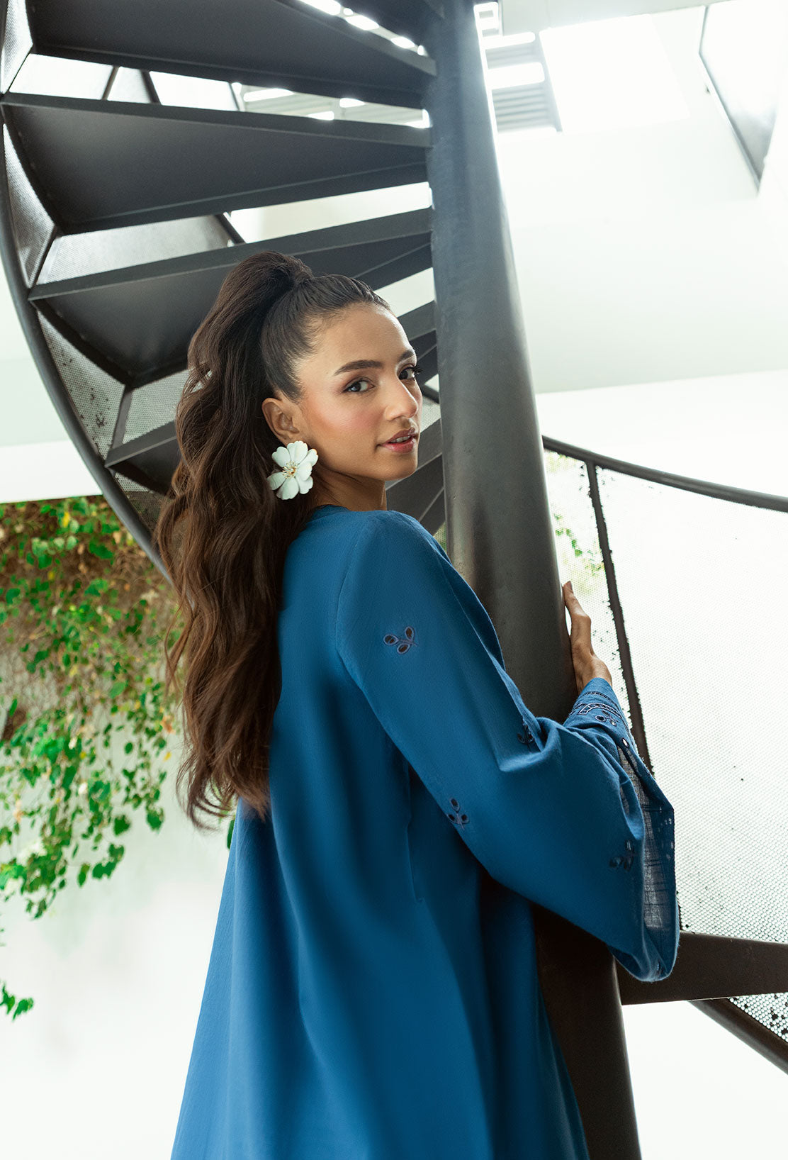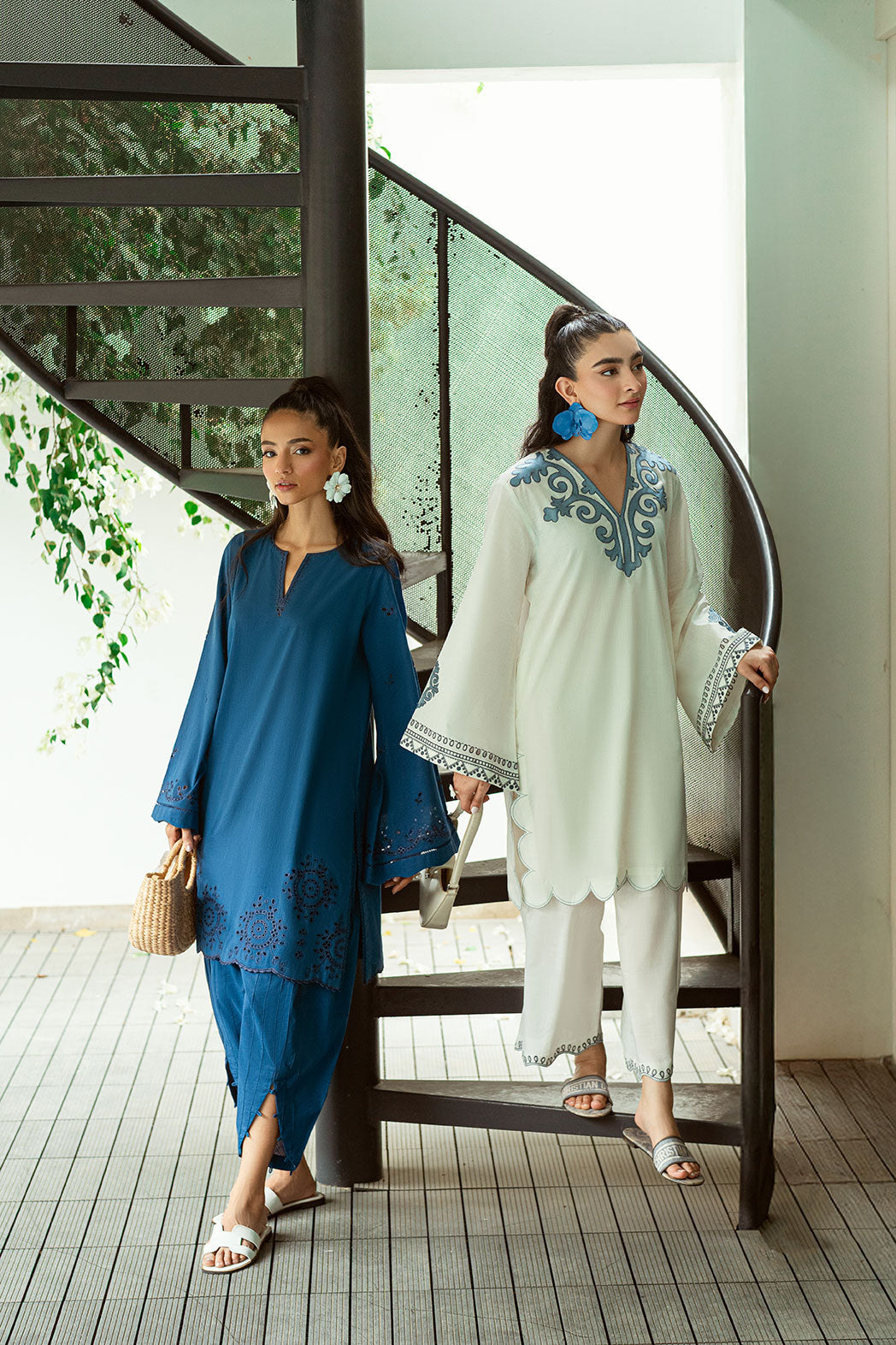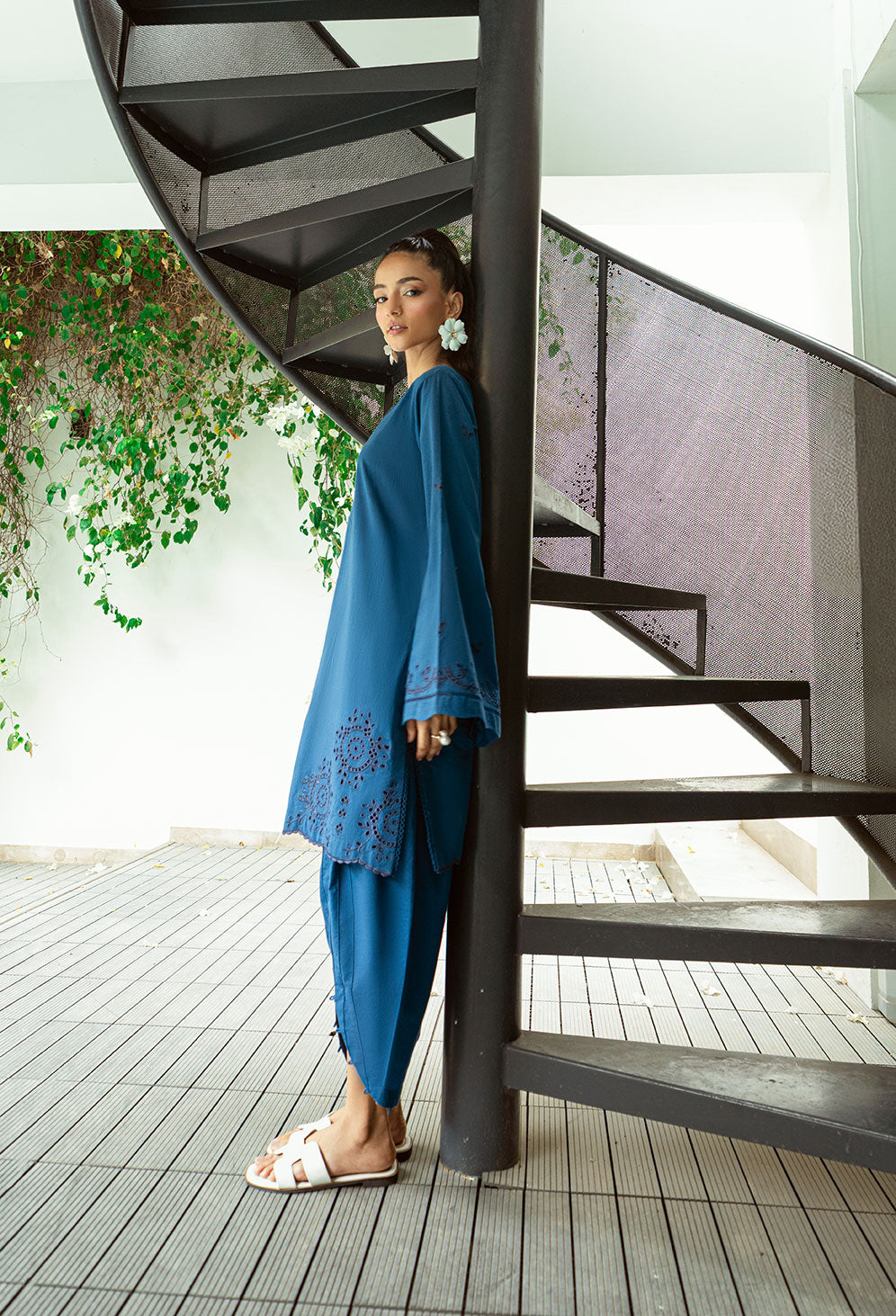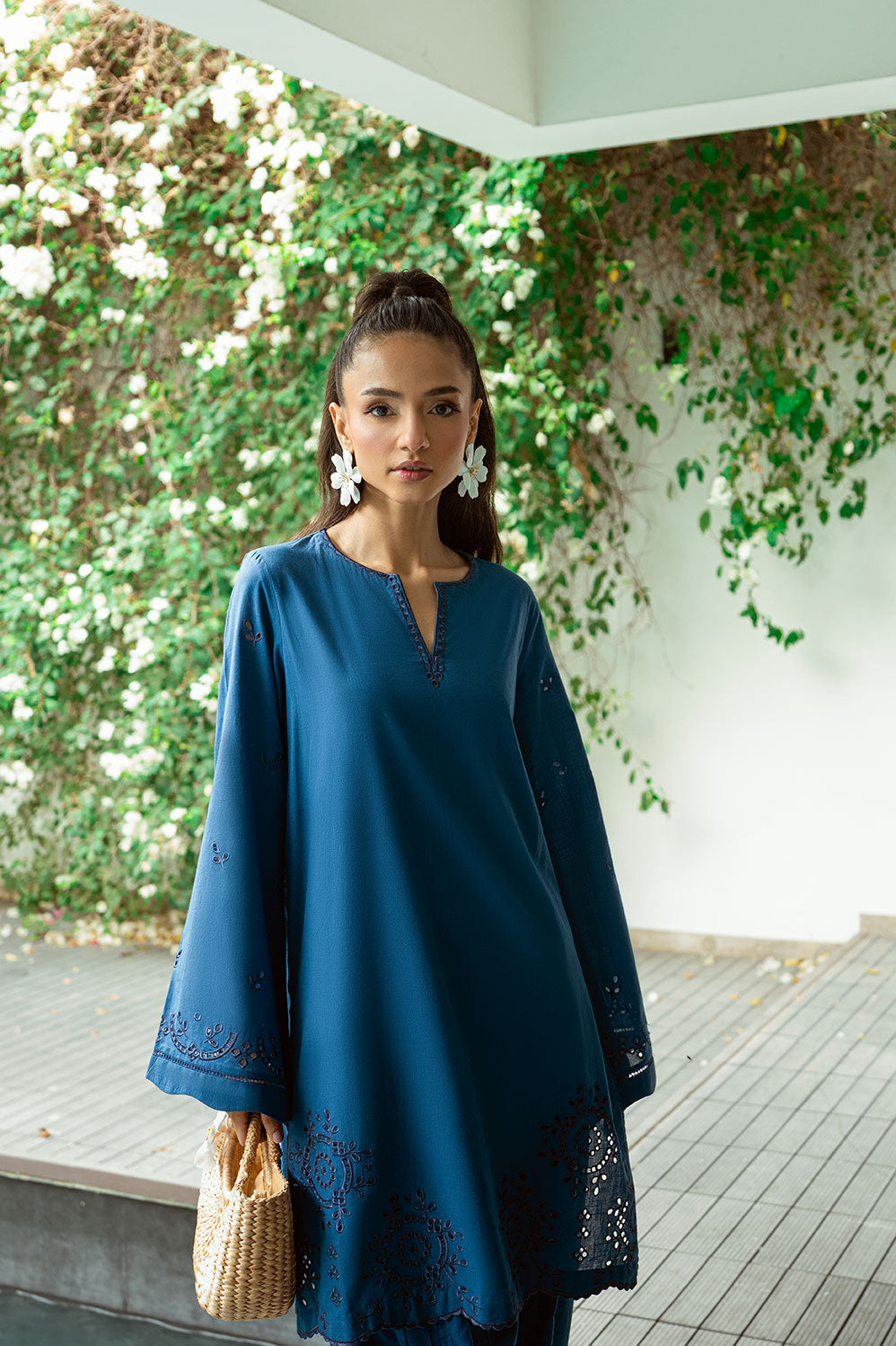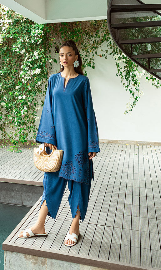 SS25DC-2566 NAVY BLUE 2PCS EMBROIDERED KURTA WITH TROUSER