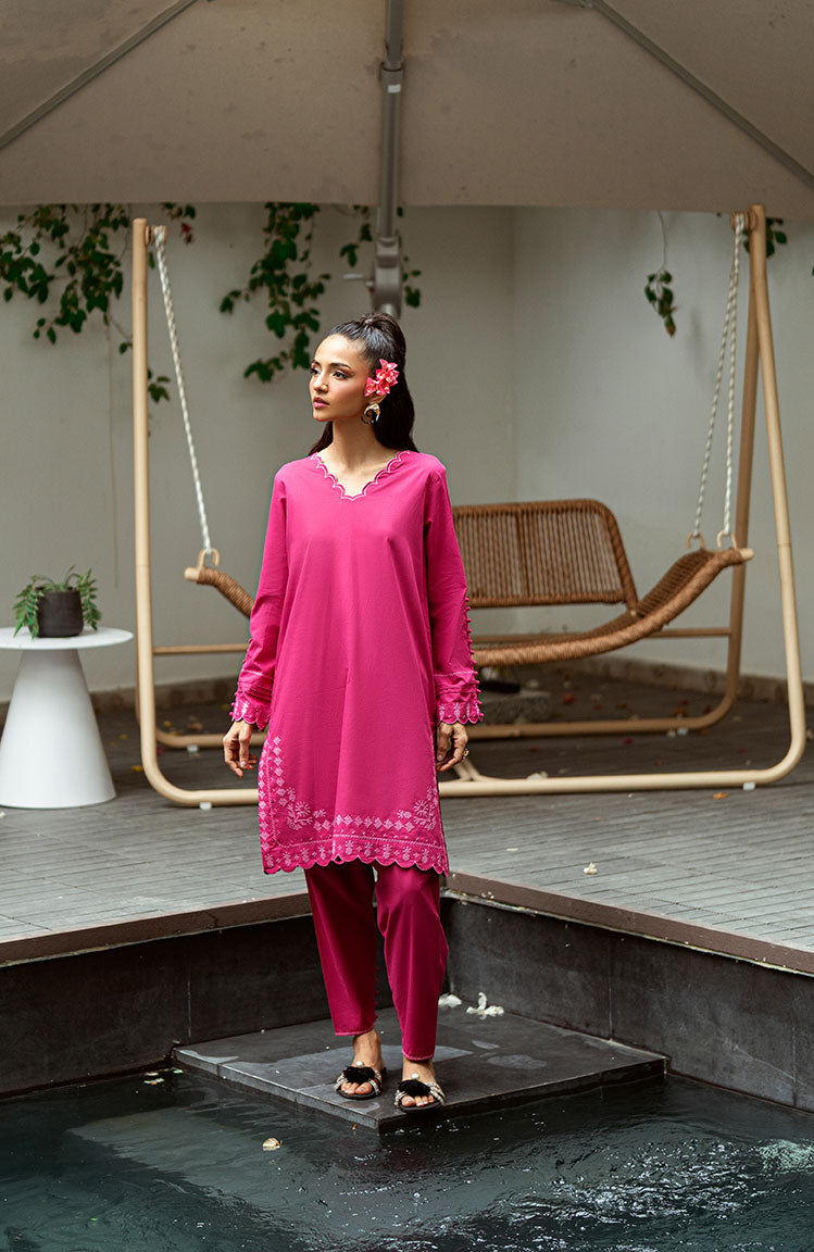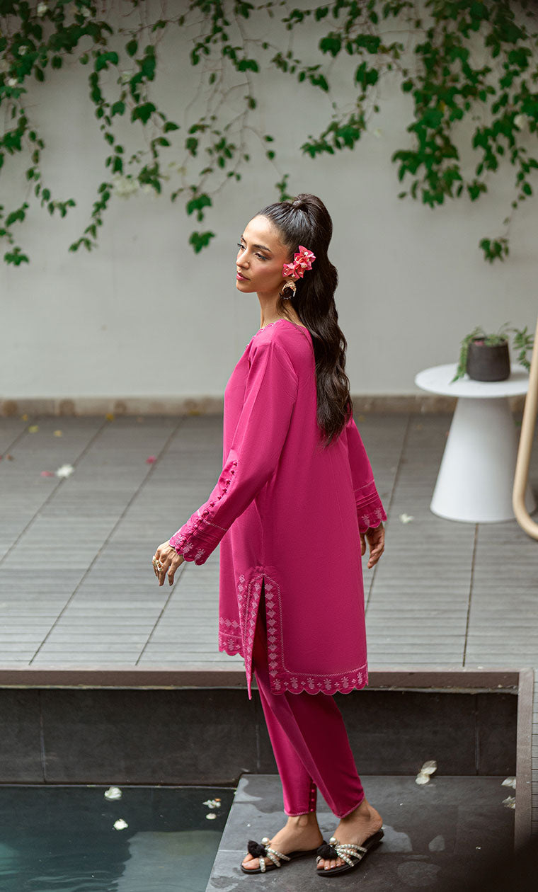 SS25DC-2572 DARK PINK 2PCS EMBROIDERED KURTA WITH TROUSER