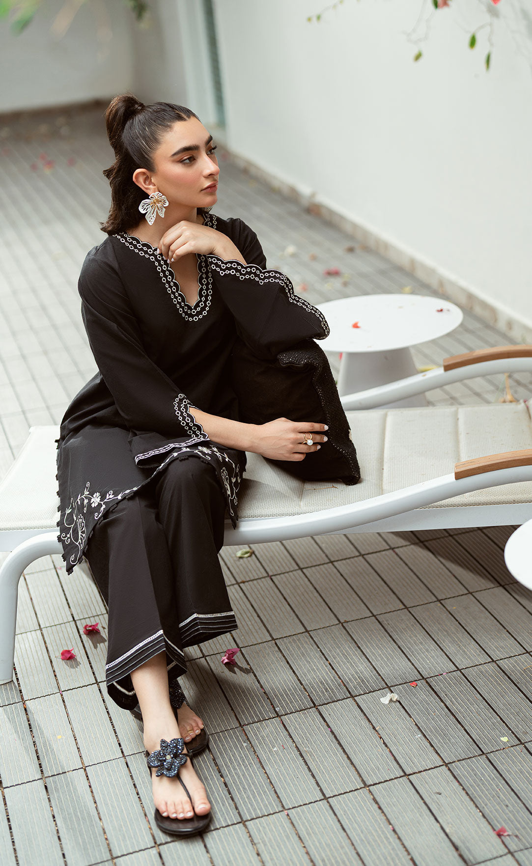 SS25DC-2575 BLACK 2PCS EMBROIDERED KURTA WITH TROUSER